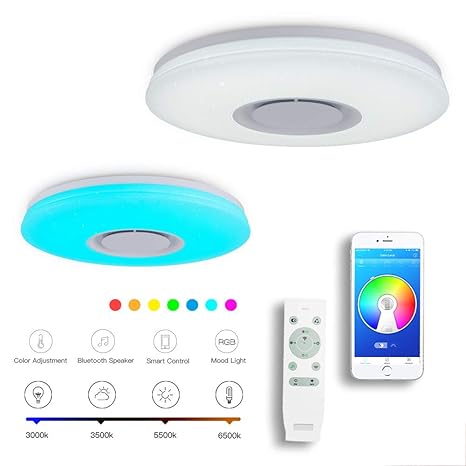 Lampara De Techo Led Con Altavoz Bluetooth Luz Blanca De Colores