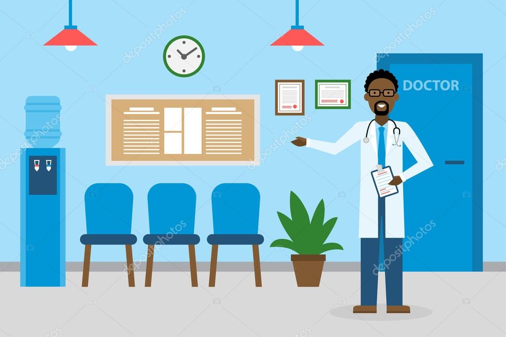 Ilustracion De Medico En La Sala De Espera Del Hospital Y