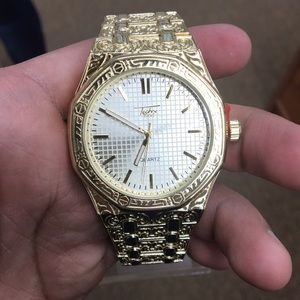Techno Pave Accessories Arabic Dial Gold Finish Hip Hop Watch