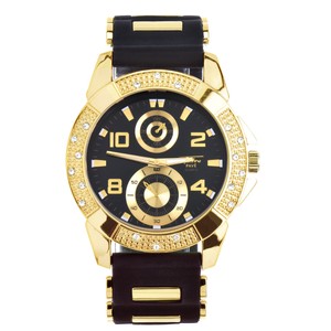 Amazon Com Totally Iced Out Cz Techno Pave Gold Tone Black Band