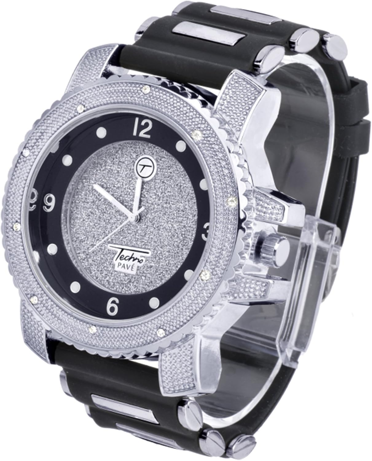 Techno Pave Silver Finish Iced Out Large Lab Diamonds On Case Iced