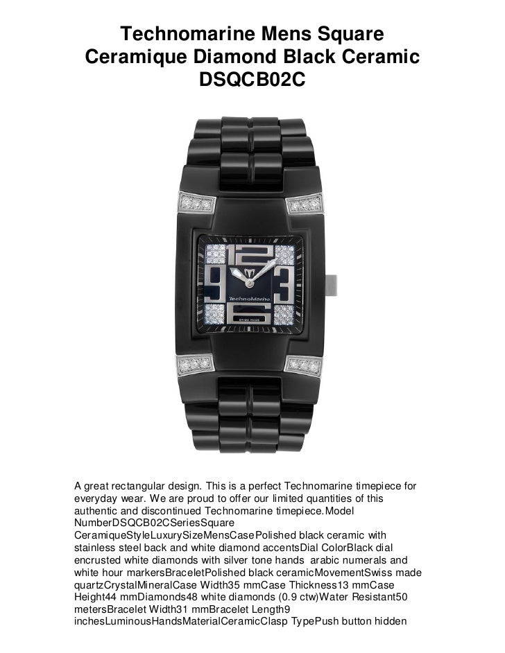 Technomarine Mens Square Ceramique Diamond Black Ceramic Dsqcb02 C