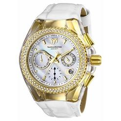 Technomarine White W Mop Chronograph Diving W Diamond Bezel Croc