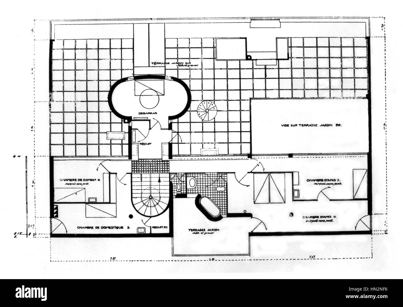 Blueprint De Una Villa De Garches Techo Del Jardin Dos Huespedes
