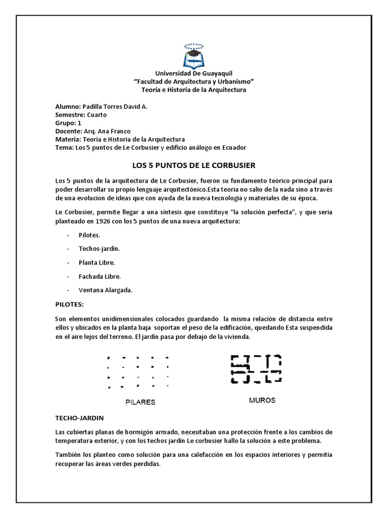 Analisis De Los 5 Puntos De Le Corbusier Docsity