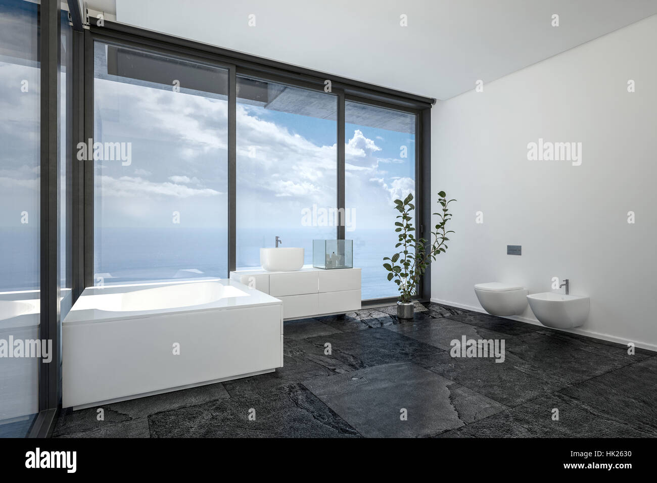 Hotel O Bano Atico En Diseno Interior Minimalista Con Suelo Negro