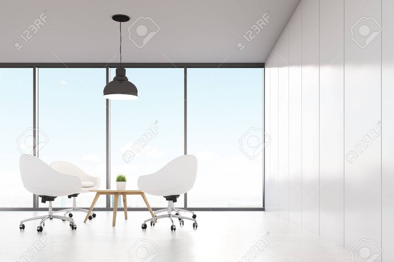 Vista Lateral Del Estilo De La Oficina Industrial Blanca De La