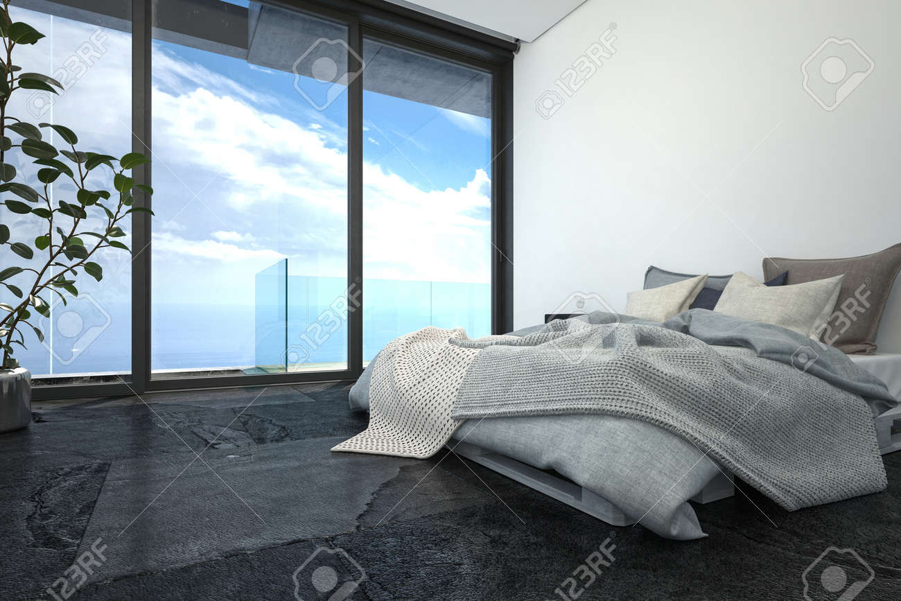Habitacion Con Paredes Blancas Ventana Panoramica Grande Una