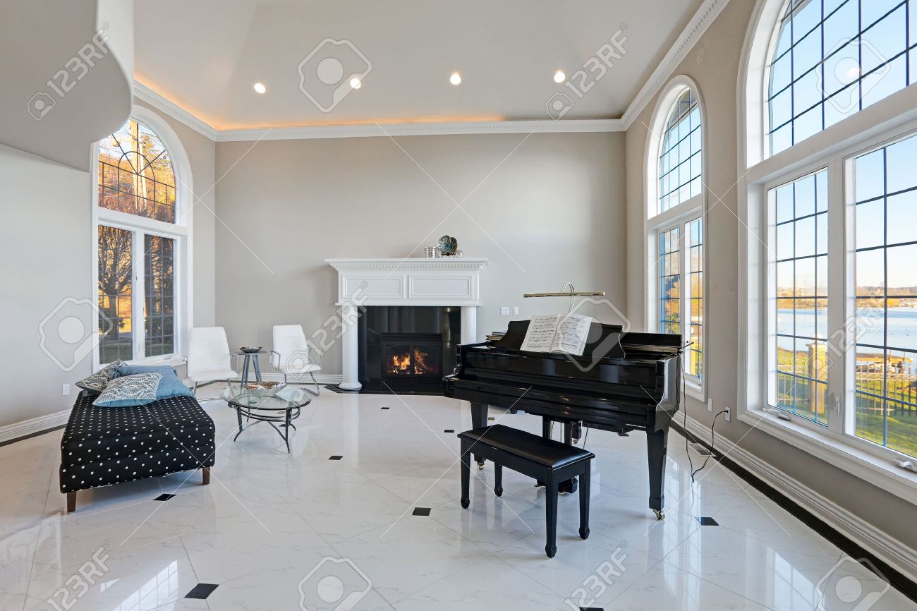 Salon De Lujo De Alto Techo Cuenta Con Paredes De Marfil Beige Que