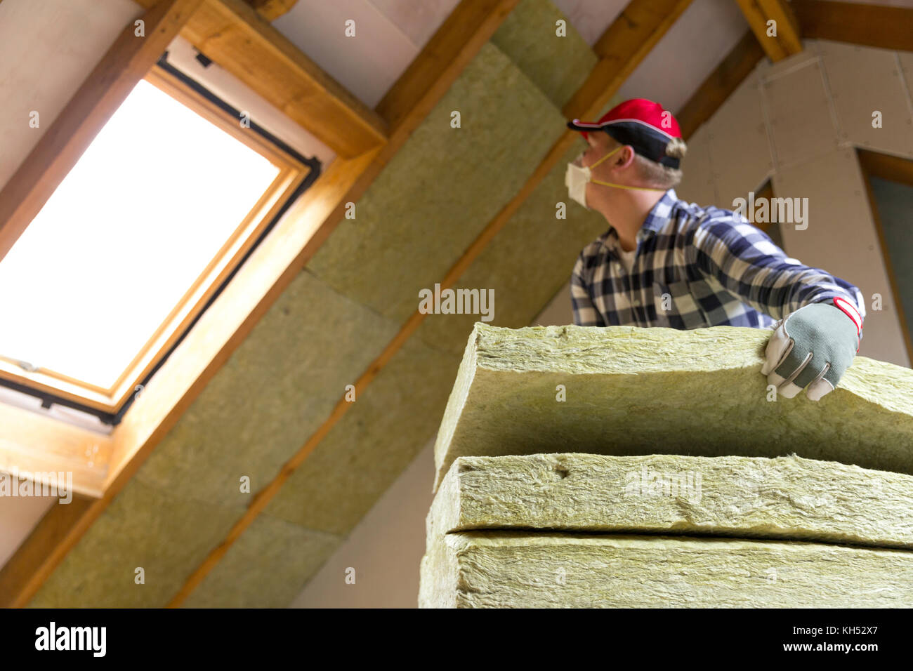 Hombre Instalacion Termica De La Capa Aislante Del Techo