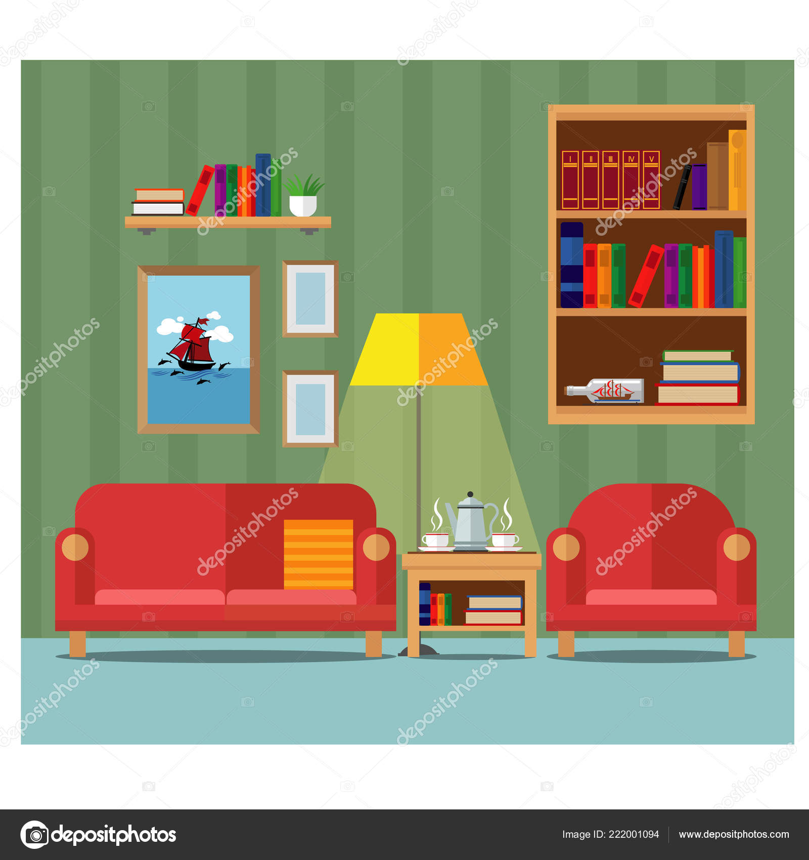 Galeria De La Sala De Estar Butaca Amarilla Stock De Ilustracion