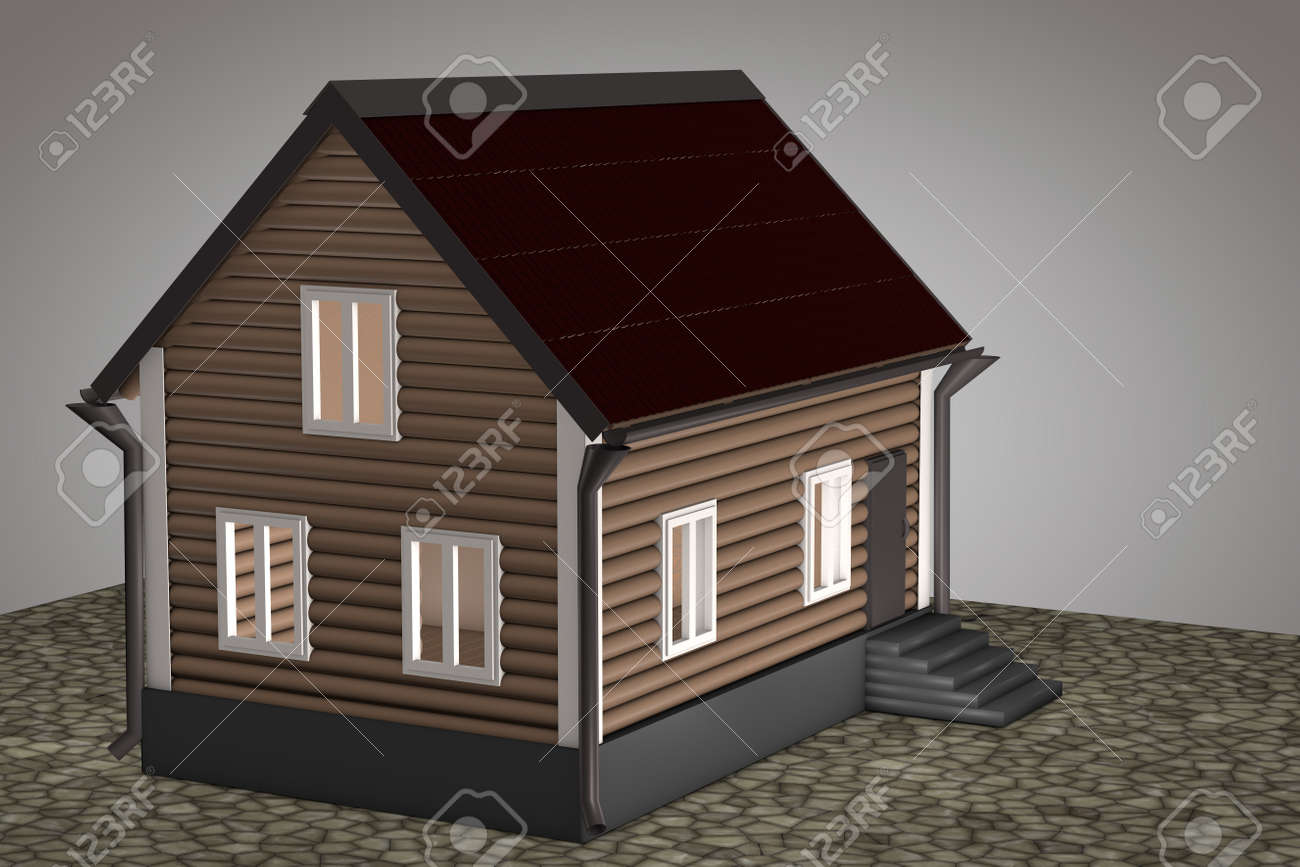 3d Diseno De Casa Con Techo Gris Ilustracion Ilustraciones