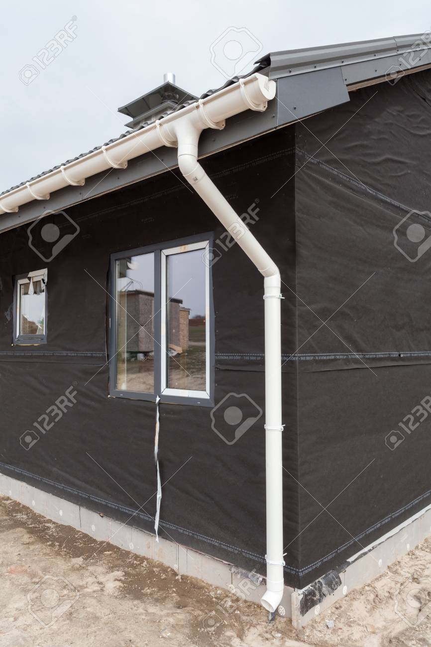 Nueva Casa Con Techo De Metal Gris Corrugado Espacio De Copia Foto