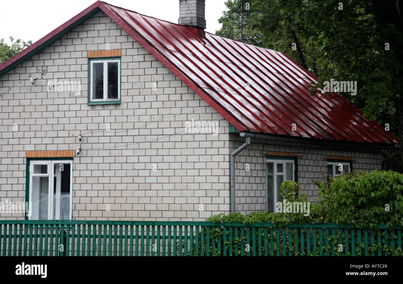 Casa De Dos Pisos Con Techo De Metal De Color Rojo Brillante
