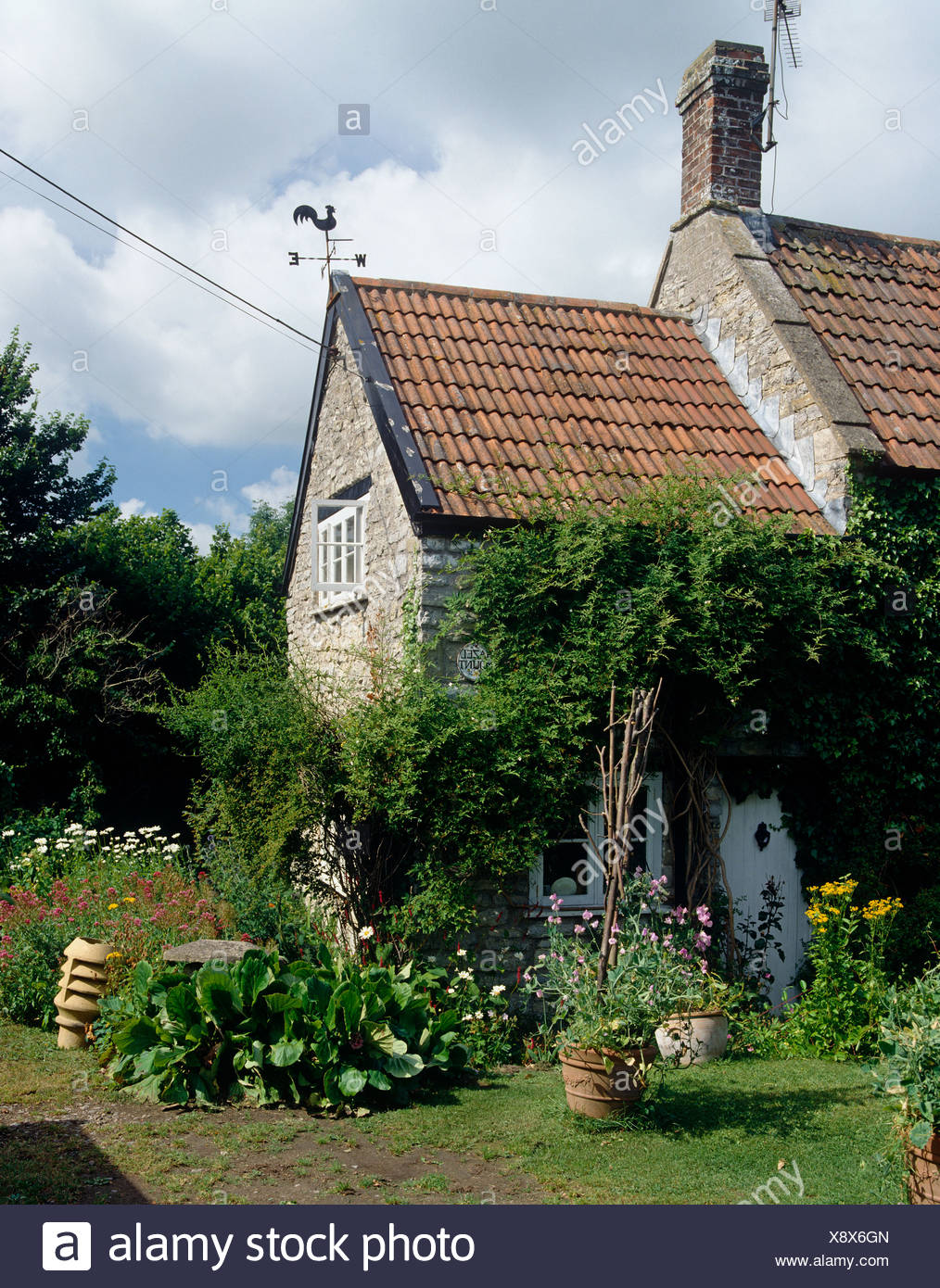 Casa Con Paredes De Color Verde Y Marron Techo En Vista En