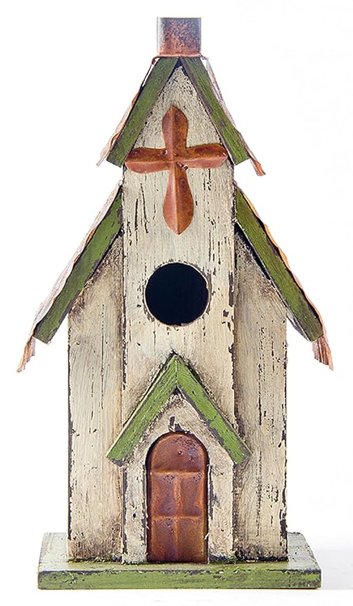 Casa De Pajaros Con Techo De Metal Color Blanco Cremoso Y Verde