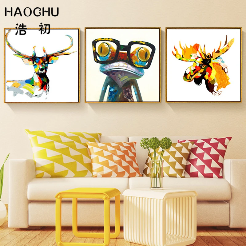 Haochu Colorful Glasses Frog Elephant Lovely Dog Print Oil