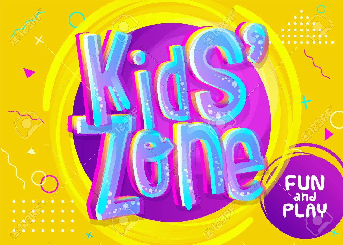 Ninos Zona Vector Dibujos Animados Logo Letras Burbujas Coloridas