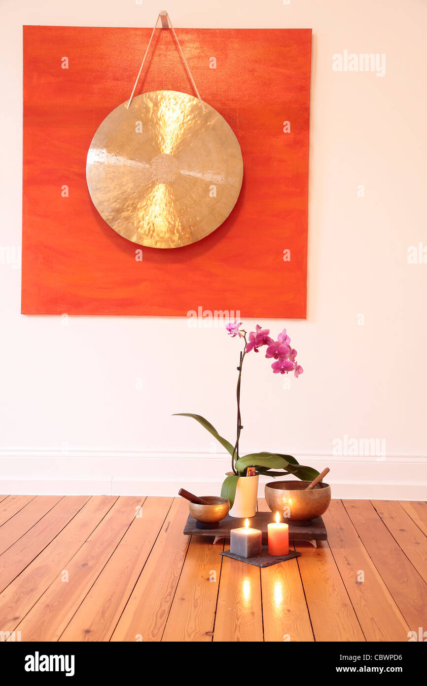 Large Gong Vela Y Orquidea Decoracion En Una Sala De Yoga Fotos