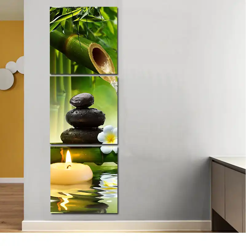 Goodecor 3 Paneles De Pared Arte Pintura Spa Piedra Bambu Zen