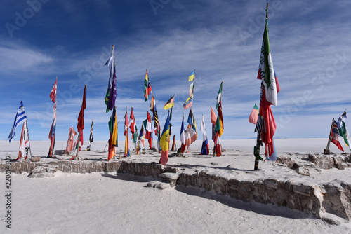 Colorful Flags From All Over The World At Uyuni Salt Flats