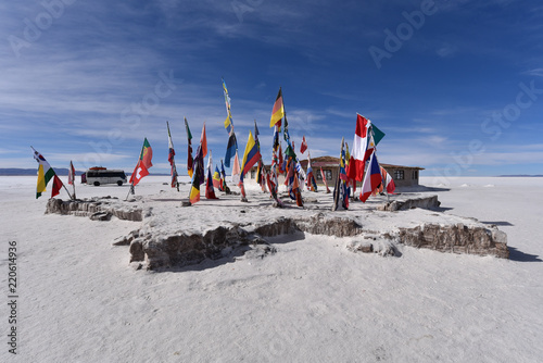 Flags Near The Hotel De Sal Playa Blanca Salar De Uyuni Potosi