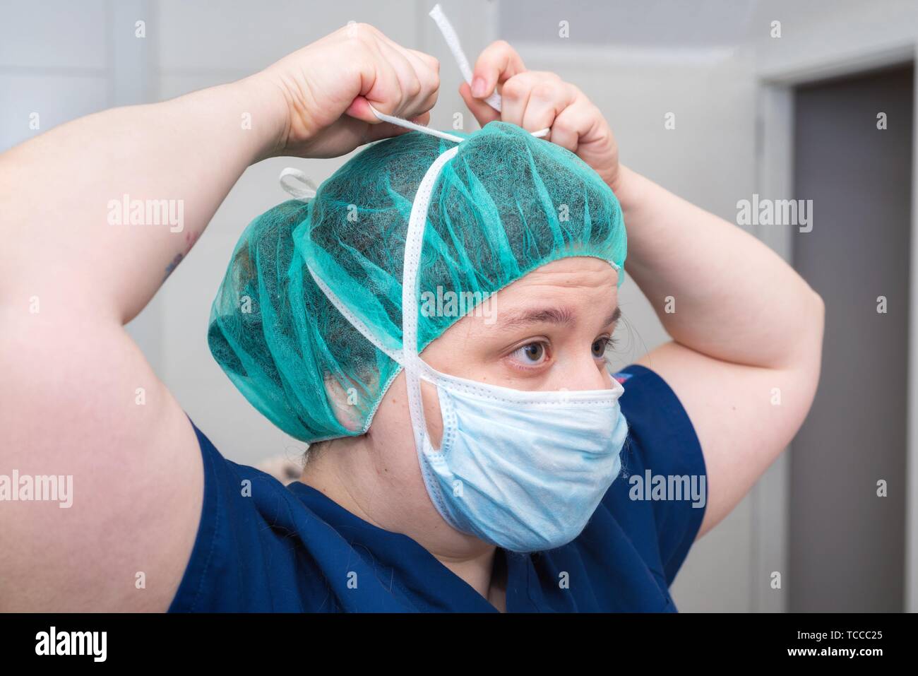Retrato De Enfermera Con Mascara En La Sala Quirurgica Foto