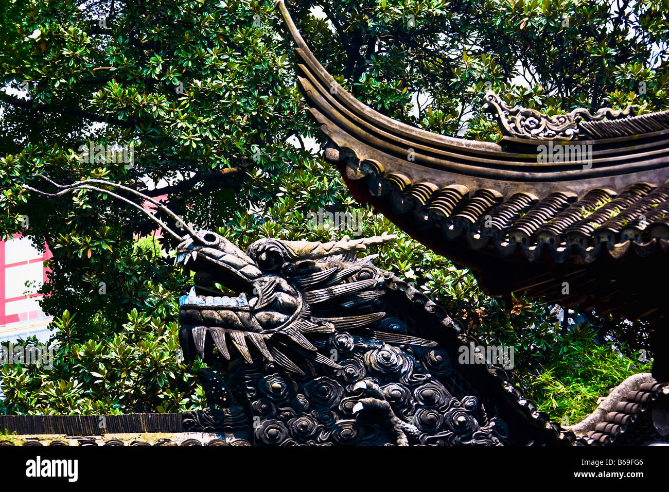 Vista De Angulo Bajo La Estatua De Dragon Chino En El Techo Los