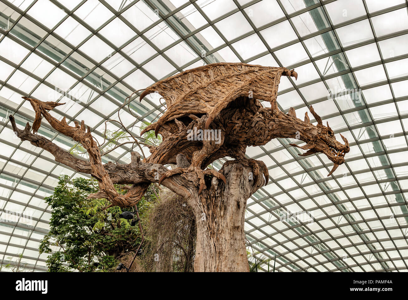 Estatua Del Dragon De Madera Raices Dentro De Flores En