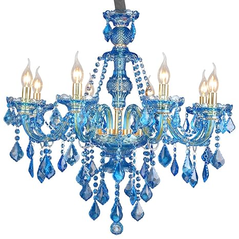Arana De Cristal Color Azul Lampara De Techo De Vidrio Moderno