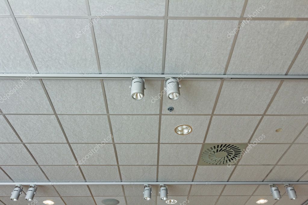 Techo De La Oficina Moderna Con Conducto De Aire Y Lamparas