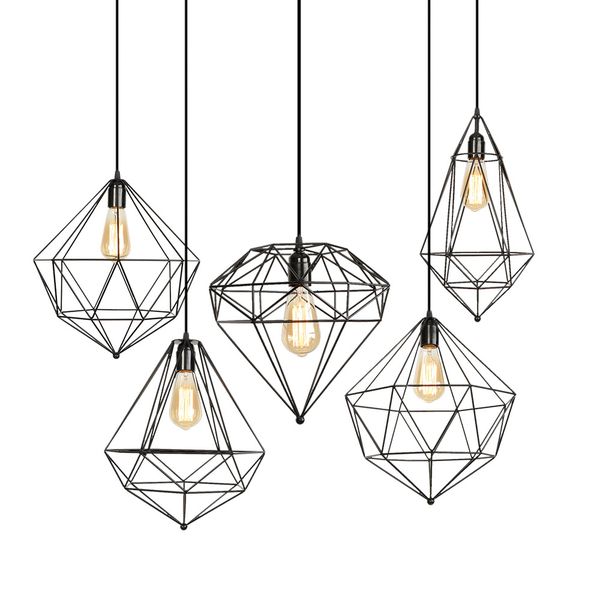 1x Retro Lampara Colgante De Techo Jaula De Forma De Diamante Loft