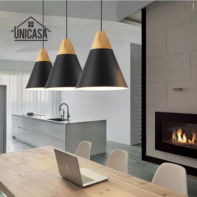 Luces Colgantes De Madera Modernas Industrial Negro Aluminio Mini
