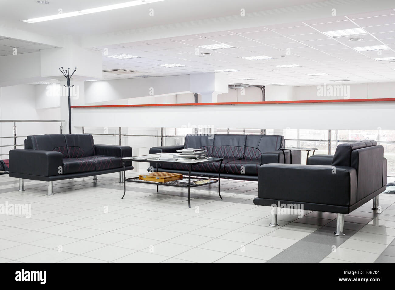 Negro Sofa Y Alfombra Oriental En Oficina Area De Recepcion