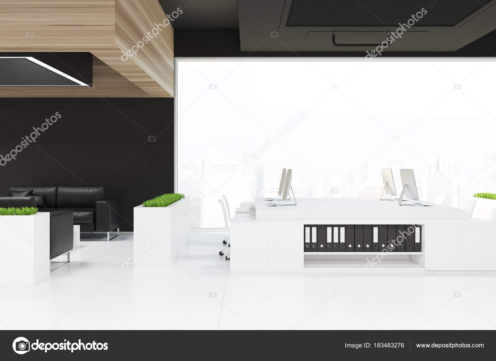 Rincon De Trabajo De Oficina De Techo Negro Foto De Stock Y Mas