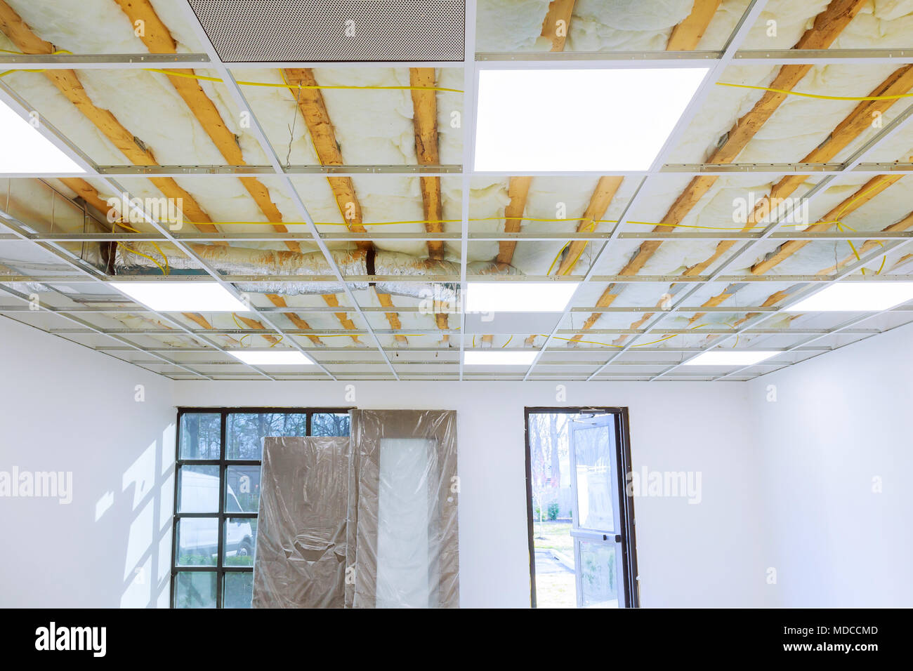 Sala De Construccion Con Paneles De Yeso Hacer Techo Suspendido
