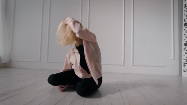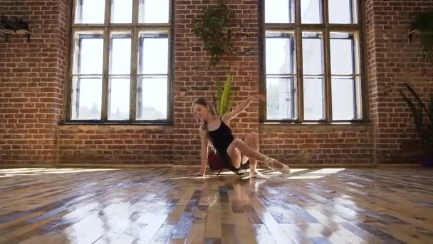 La Graziosa Ballerina Esegue Un Pezzo Di Danza Sul Pavimento In