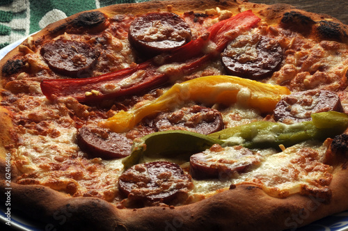 Pizza Con Salame Piccante E Peperoni Buy This Stock Photo And