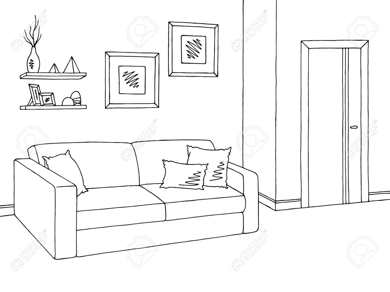 Graphic Sketch Living Room Stock Photo C Irogova 28021313
