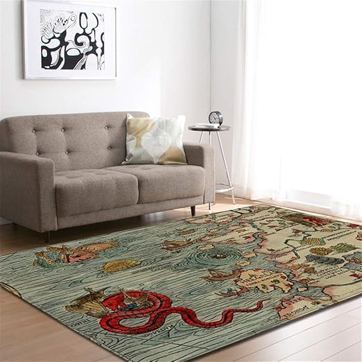 Alfombra Grande Estilo Nordico Mapa Nautico Y Bola 3d Sala De