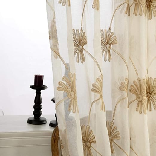Moderno Flor Amarilla Bordado Poliester Material Para Sala Blanco