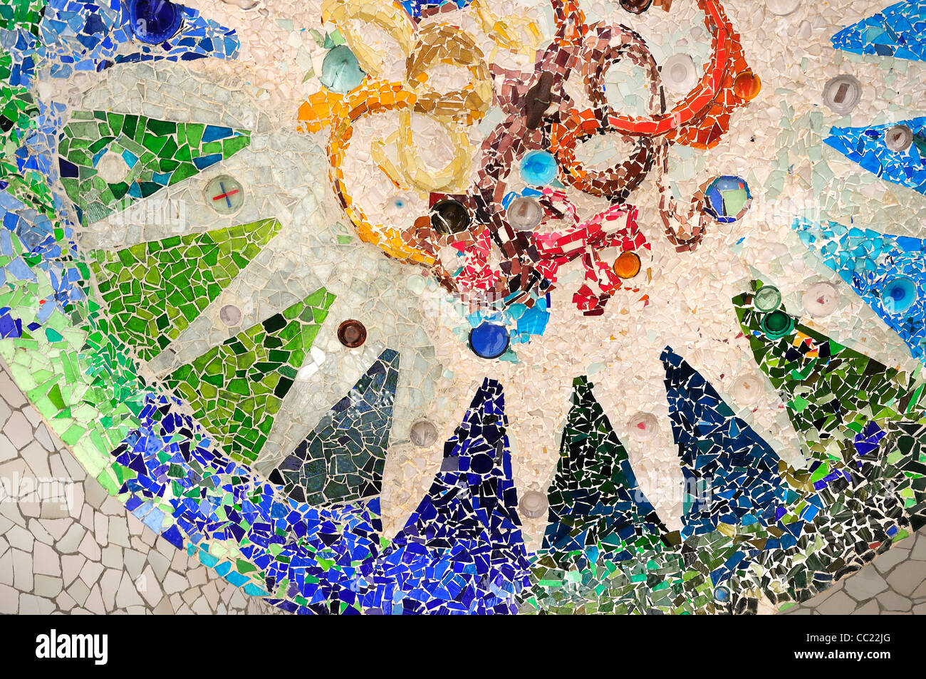 Gaudi Mosaic Rosette Sala Hipostila Park Guell Barcelona