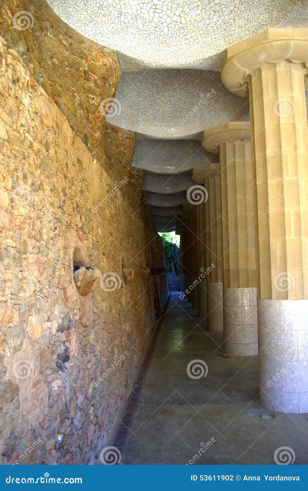 Park Guell Column Gallery Barcelona Stock Photo Image Of Artwork
