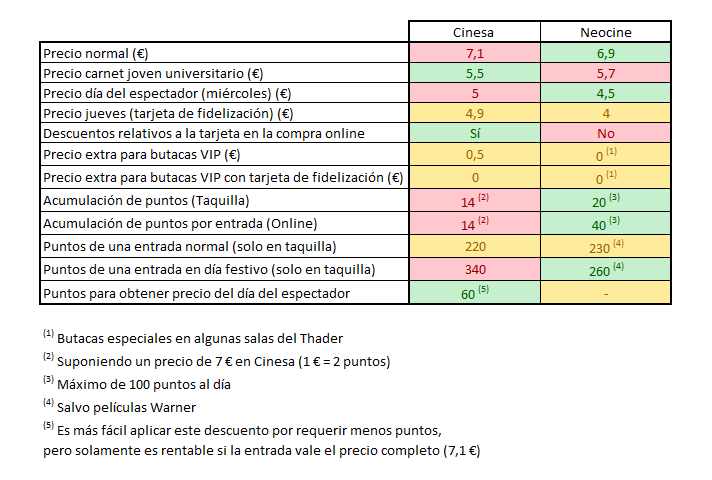 Jm On Twitter He Creado Una Tabla Comparativa Entre Los Cines De