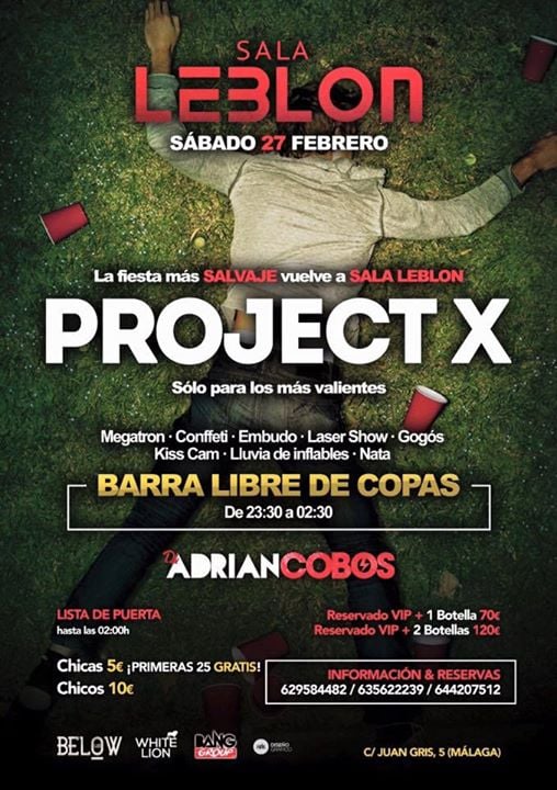 Sala Leblon La Fiesta Mas Salvaje Project X At Sala Leblon Malaga