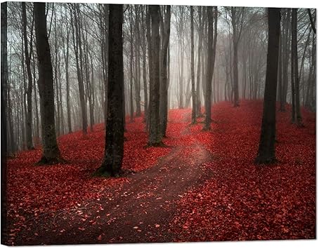 Amazon Com Gran Pintura Negra Blanca Roja De Un Bosque Paisaje