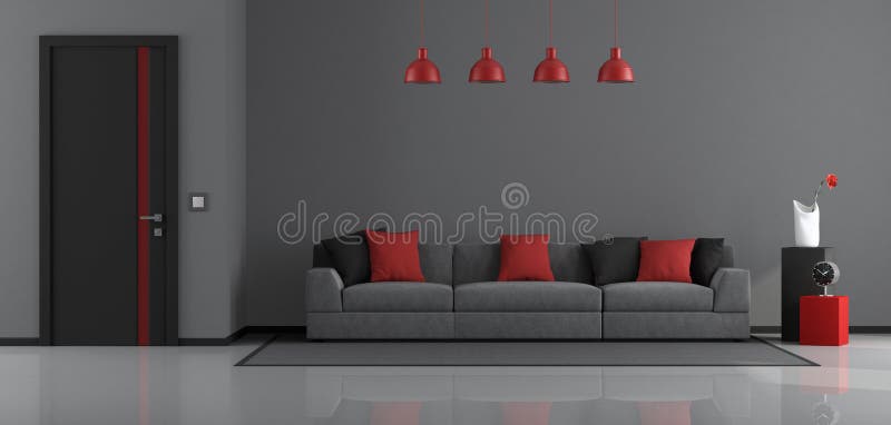 Sala De Estar Moderna Gris Negra Y Roja Stock De Ilustracion