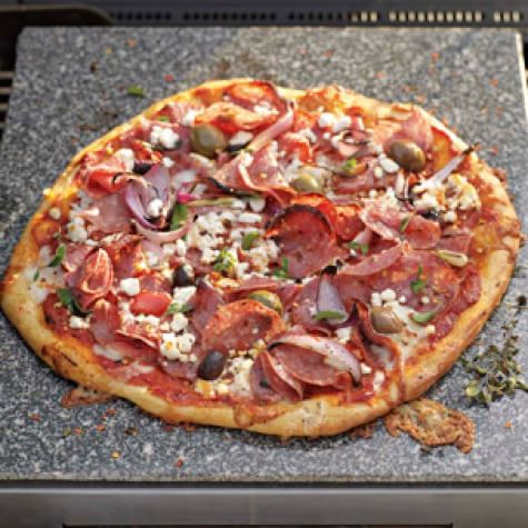 Grilled Pizza With Salami Olives And Goat Cheese Williams Sonoma