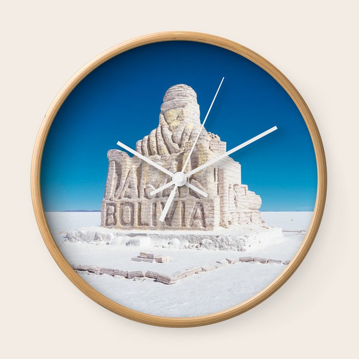 Dakar Bolivia Monument In Salar De Uyuni Salt Flats Wall Clock