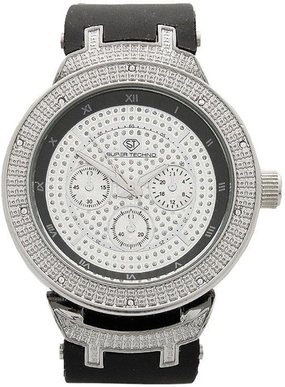 Amazon Com Super Techno Diamond Watch Mens Genuine Diamond Watch